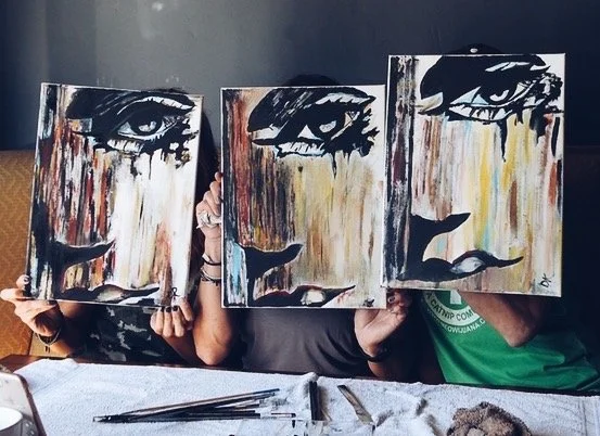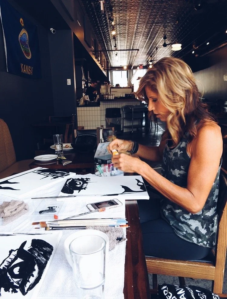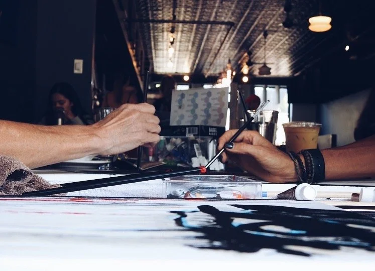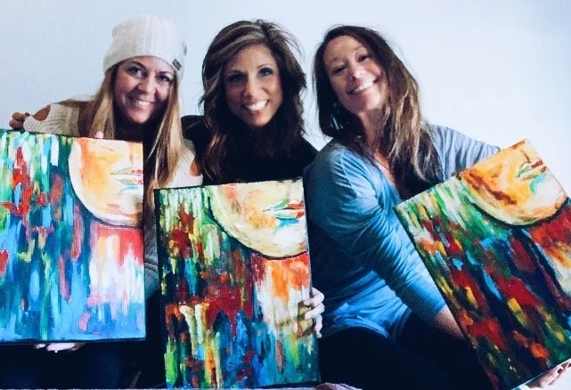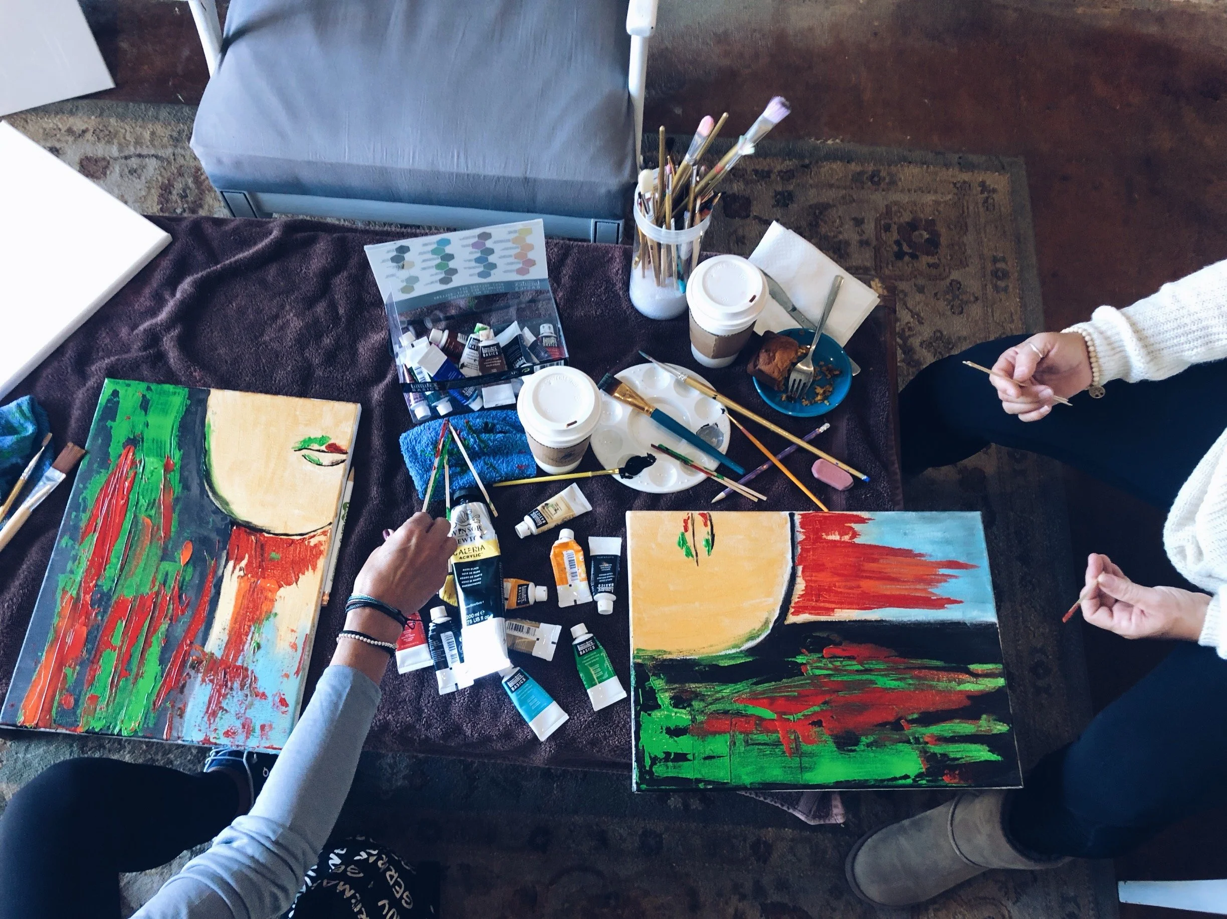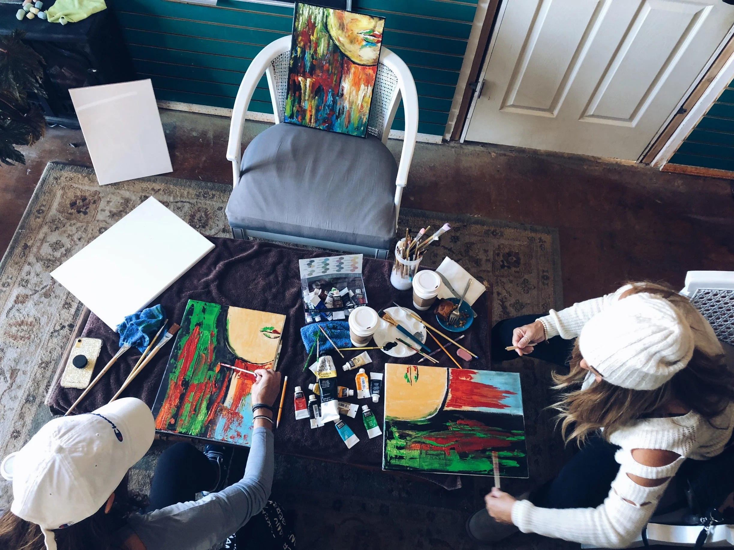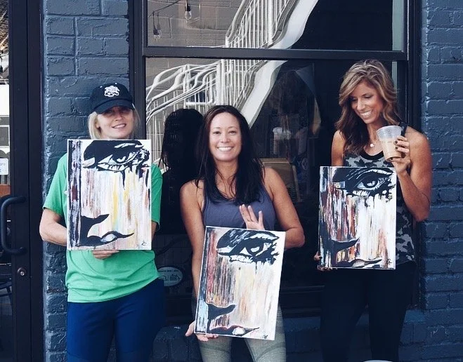 It all begins with a small group of 2 or 3 friends. Inspired by the smell of coffee roasting, we work a couple of hours to create an Acrylic on Canvas painting! It’s $30 per person. I bring the supplies, you just show up! So fun!