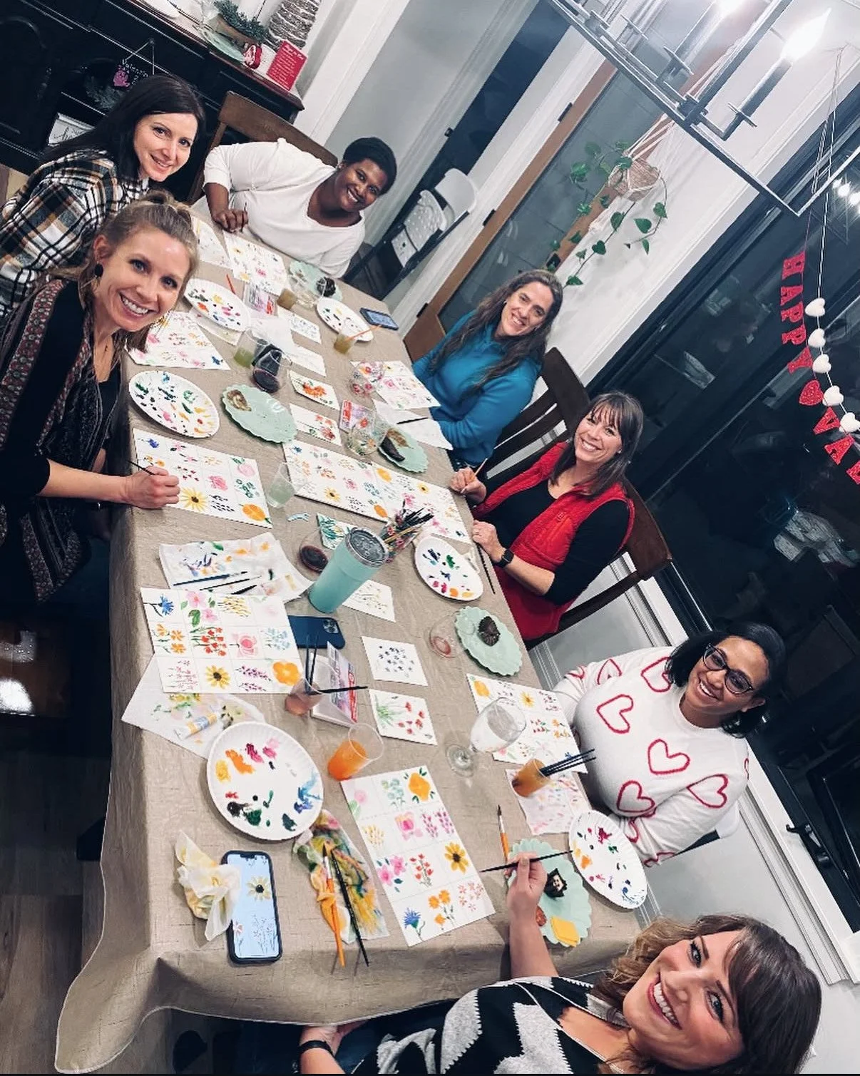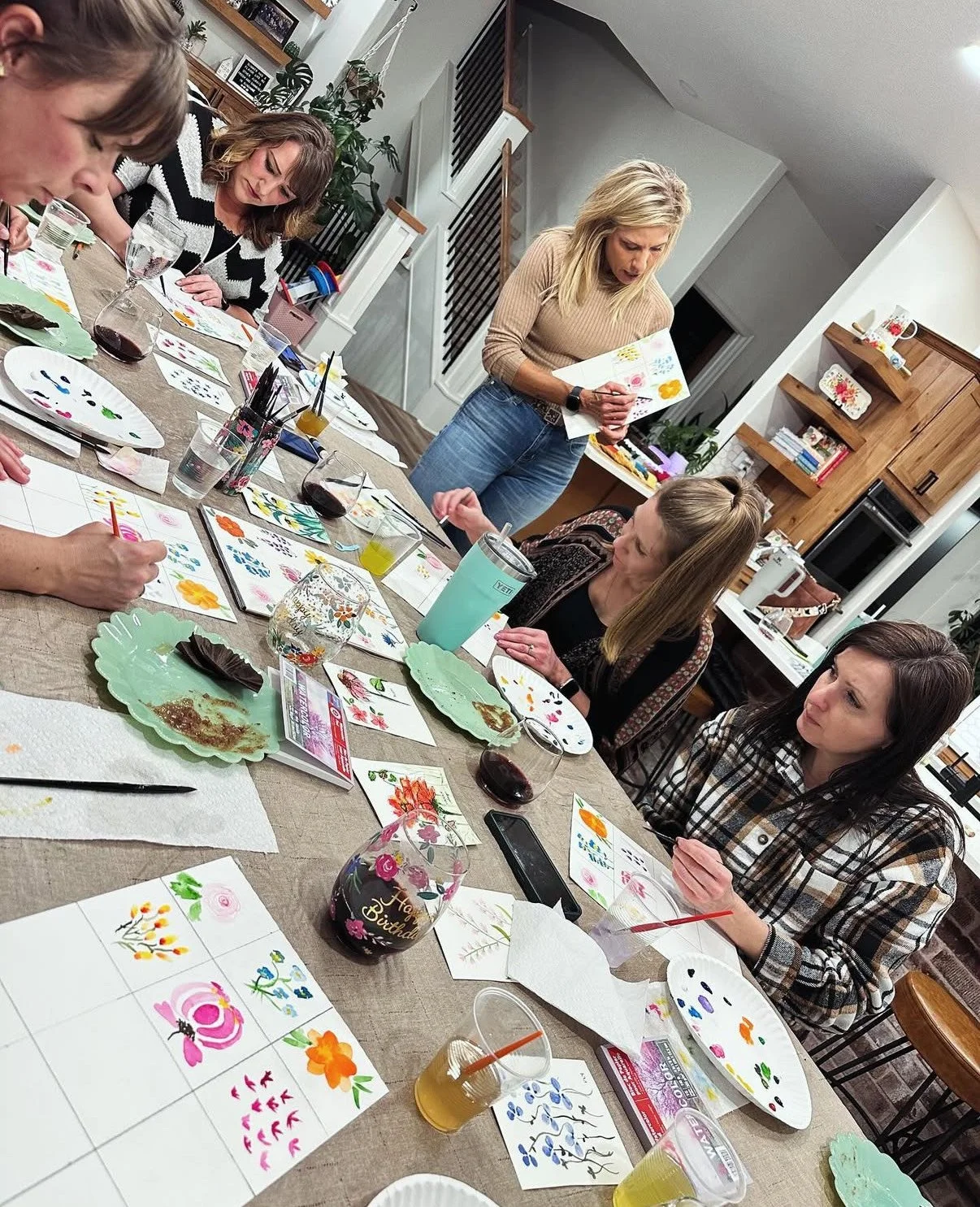 I come to your home, workplace, or clubhouse and provide step by step directions to you and your guests for 2 hours to create beautiful acrylic on canvas paintings of a theme we have chosen together. Watercolor classes of flowers or birds are another option. One of the most popular classes are painting wine glasses or christmas, valentines day, or birthday parties! $35 per person. I bring all the supplies. You invite the guests! Adult drinks are welcomed but not provided by the artist.